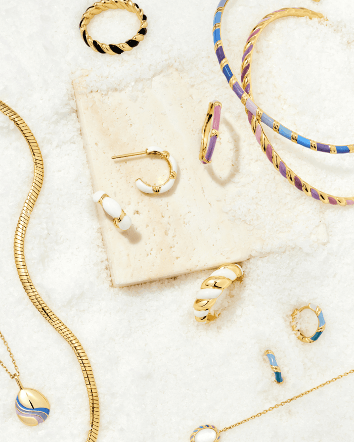 Start with a symbolic earring like the Martini Stud, add a birthstone pendant, and layer with enamel rings and bracelets for that playful, editorial finish, just translated into something more wearable and personal.